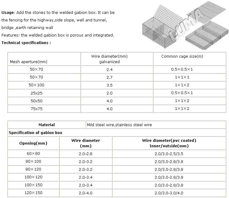 welded Gabion box, gabion mesh,gabion basket Welded gabion box is the cage welded by the quality low carbon steel wire.